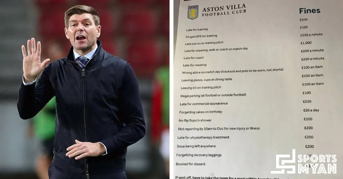 စည်းကမ်းလိုက်နာရန် ပျက်ကွက်သည့် အက်စတွန်ဗီလာကစားသမားများအတွက် နည်းပြ ဂျရတ် ချမှတ်ထားသည့် ဒဏ်ကြေးစာရွက် လူမှုကွန်ရက်တွင် ပျံ့နှံ့